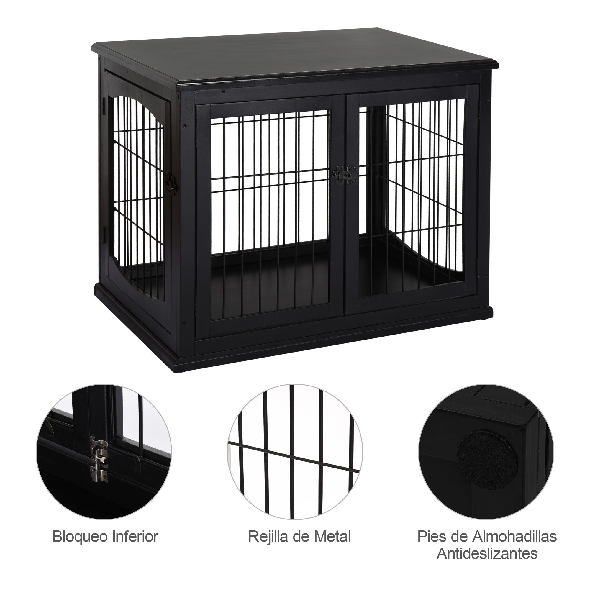 • MEDIDAS TOTAIS: 58,5x81x66cm (CxLxA). Medidas da puerta dianteira: 45x53 cm (CxLxA). Medidas da porta lateral (tamanho de somente uma porta): 35x53cm. Altura da base: 3cm. Peso máximo suportado: 30kg Está procurando uma casa interior para seu animal de estimação? Te preocupa que uma gaiola para cães afete o estilo de decoração de sua casa? Esta casa para cães de PawHut resolverá seus problemas. Em ocasiões pontuais na qual temos que fechar nossos animais de estimação, seja porque vamos nos ausentar ou porque recebemos visitas incomodas para eles. É aquí que essa gaiola pode ser uma boa alternativa e mais se com ela não isolamos nosso animal de estimação de seu entorno