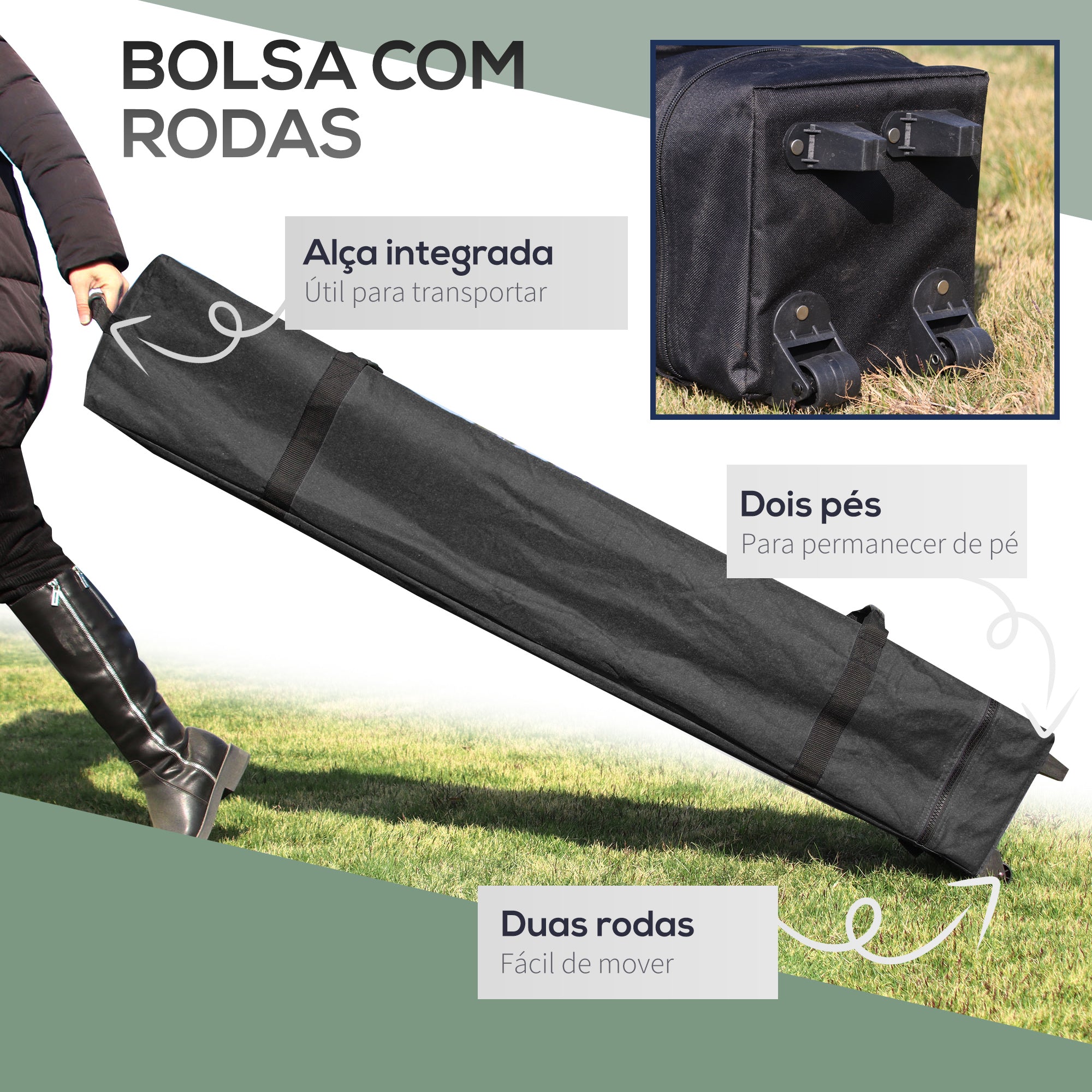 - MEDIDAS TOTAIS: 253x253x268 cm (CxLxA). Medidas quando dobrado: 25x25x114 cm (CxLxA) Gosta de participar de mercados e feiras? Está procurando uma tenda dobrável para levar para o acampamento? Esta tenda Outsunny é ideal para reuniões ao ar livre, acampamentos, feiras, mercados ou para o terraço ou pátio da sua casa. Fácil de montar, terá a barraca montada em questão de minutos. Além disso, ela vem com 4 sacos de peso recarregáveis para que não precise se preocupar com o vento. E como vem com uma bolsa com rodas, pode levá·lo facilmente para qualquer lugar