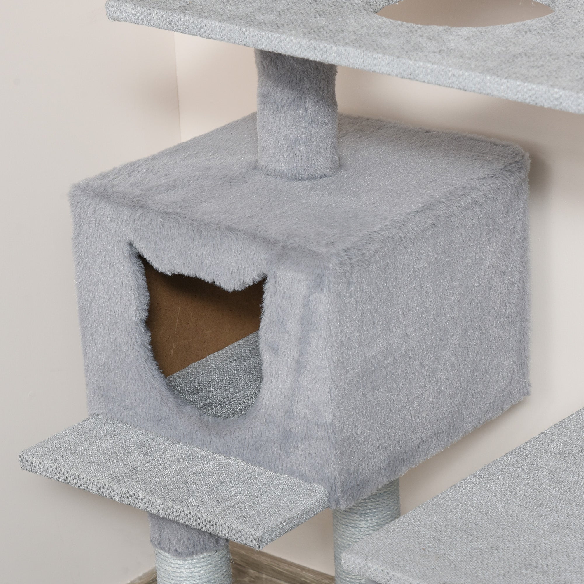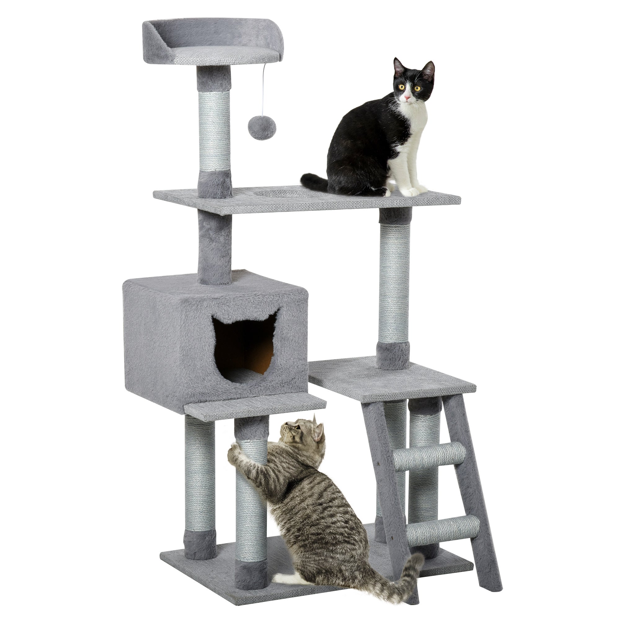 • MEDIDAS TOTAIS: 60,5x40x124cm (CxLxA); Adequado para gatos com peso inferior a 5kg. Requer montagem Dê a seu amigo um espaço de diversão com esta árvore arranhadora de PawHut. Esta árvore possui múltiplas plataformas para que possam descansar, brincar e afiar suas garras. Conta com uma estrutura robusta de aglomerado de madeira, uma caverna espaçosa e uma cama estofada em um agradável tecido de pelúcia. Possui uma escada para facilitar que seu companheiro possa subir e baixar facilmente. Mime seu gato com esta linda árvore arranhadora!