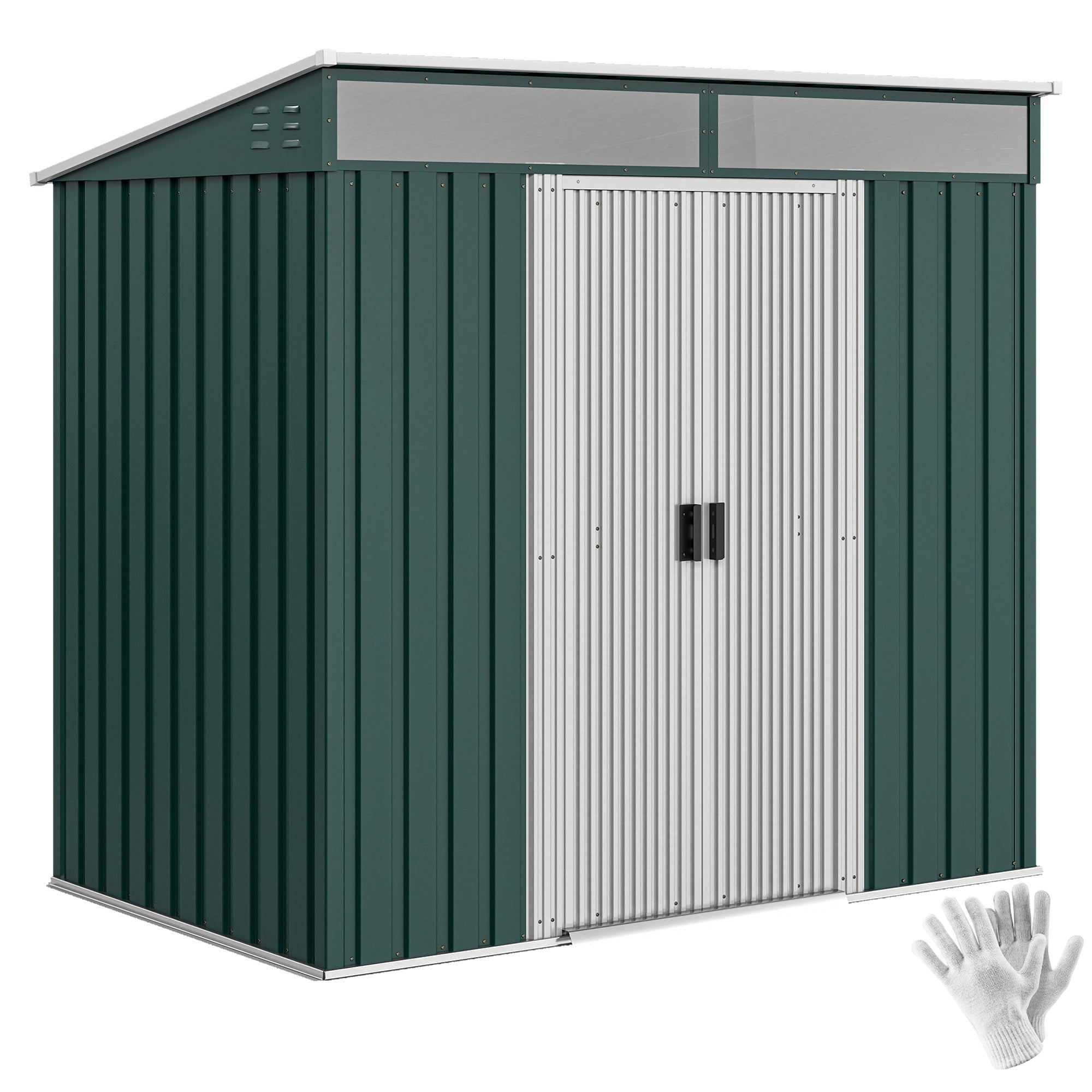 Abrigo de Jardim 2 m² 195x122x181,5 cm Abrigo de Armazenamento Metálico com Porta de Correr 2 Janelas e Anti-UV para Armazenar Ferramentas Pátio Exterior Verde